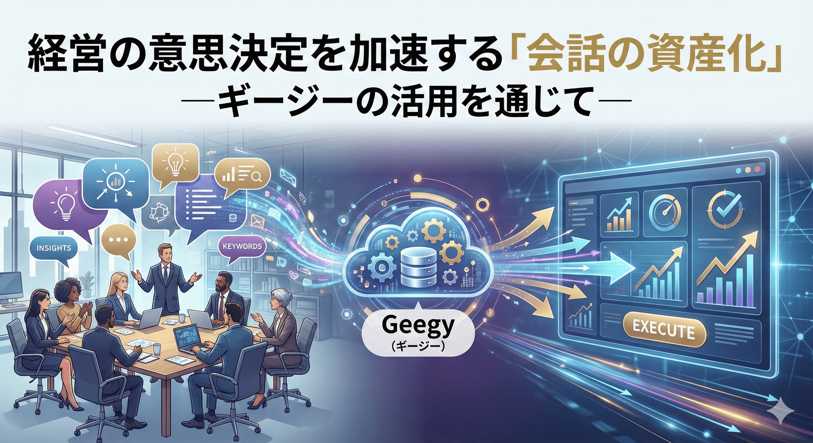 経営は“言葉”から始まります。ギージーは、その言葉を取りこぼさず、意思決定の根拠へと整え、組織の知へと蓄積します。判断の速さ、説明の強さ、継承のしやすさ——そのすべては、記録と再利用の設計から生まれます。